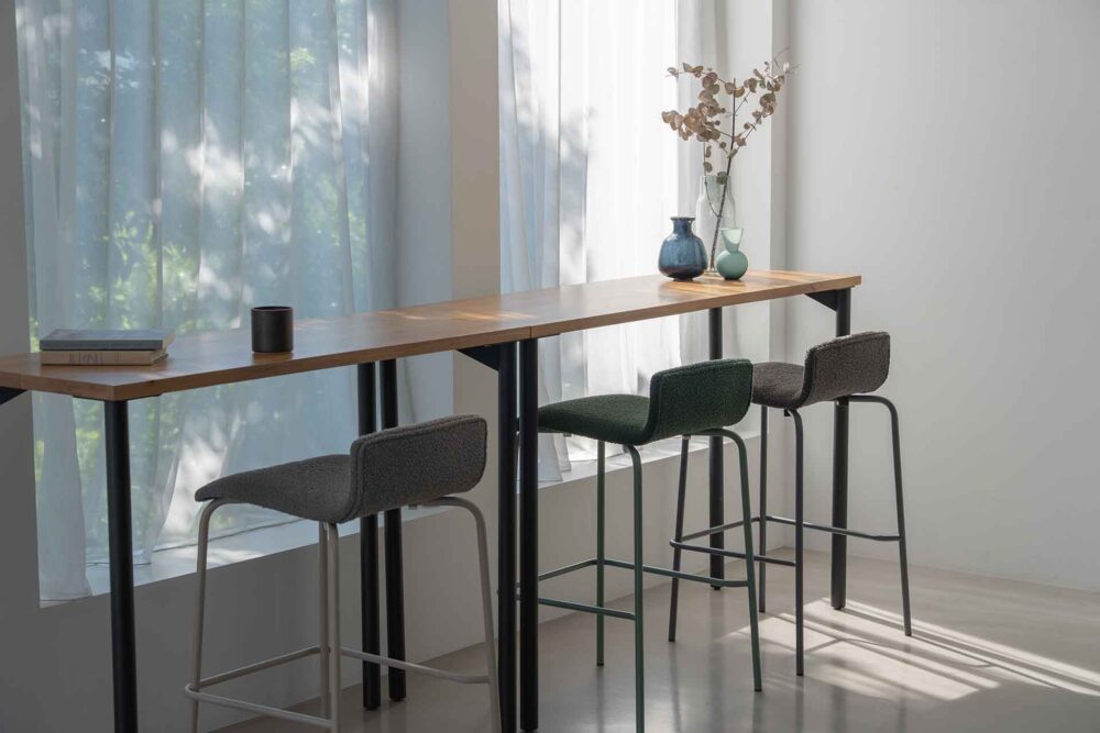 DTノードⅡ_120×50_OAK_脚08(BK)_150×50_OAK_脚08(BK)+カウンターモルノ_シーン3
